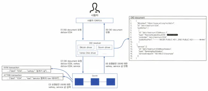 요청을 받은 DID resolver는 Sovrin driver를 통해 Sovrin 블록체인 플랫폼에 맞는 DID