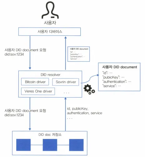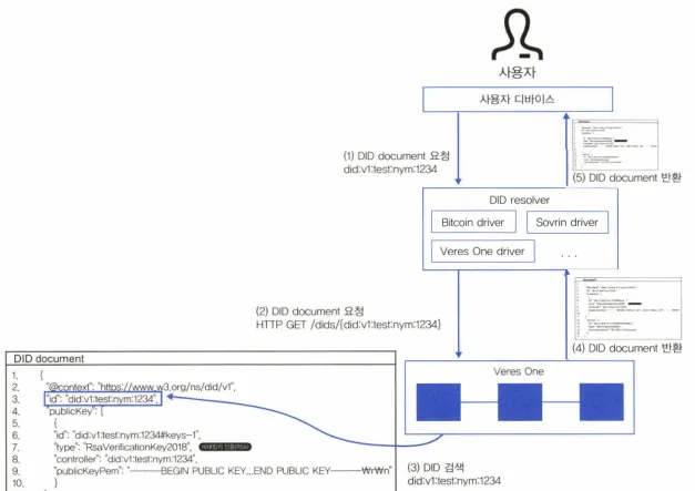 사용자는 DID resolver에 DID document를 요청