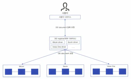 사용자의 DID document 등록 요청을 받은 DID registrar는 사용자의 요구에 따라 DID document를 등록할 플랫폼에 맞게 트랜젝션, API 등을 생성하여 DID document를 등록