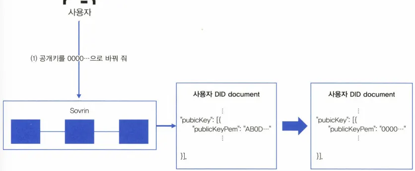 사용자가 더 이상 사용하지 않을 DID가 가르키는 DID document의 공개키 값을 모두 0으로 변경