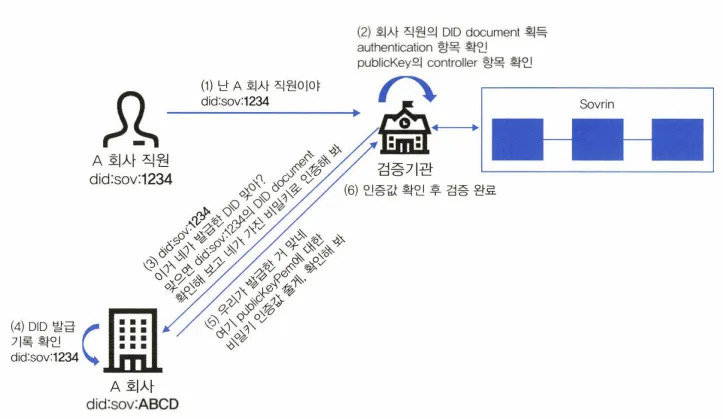 사용자가 앞서 설명한 DID document와 동일한 DID document를 사용한다고 가정하고, 검증기관 역시 이미 사용자의 DID를 획득했다고 가정했을 경우