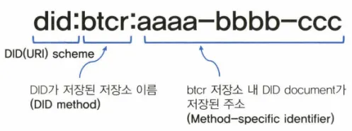 객체에 대한 식별자로 사용될 뿐만 아니라 인증 수단인 DID document를 참조할 수 있는 URI 역할까지 동시에 수행 | 객체를 식별하는 식별자로만 사용할 수 있고, 해당 객체를 인증하기 위해서는 별도의 인증 수단이 필요 |
