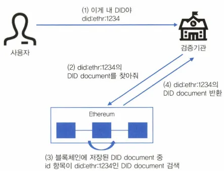 사용자가 검증기관에게 did:ethr:1234가 본인의 DID라고 주장
