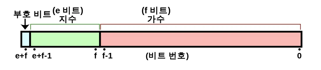 숫자를 표현할 때 부호 비트, 지수, 가수부분으로 나누어서 숫자를 표현하기 때문에 오차가 발생할 수도 있음 (실수를 정확히 표현하지는 못함)