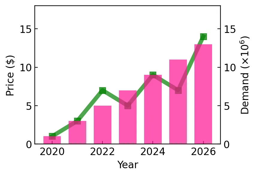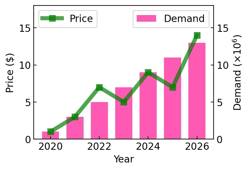 ax2.bar(x, y2, color='deeppink', label='Demand', alpha=0.7, width=0.7)
