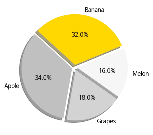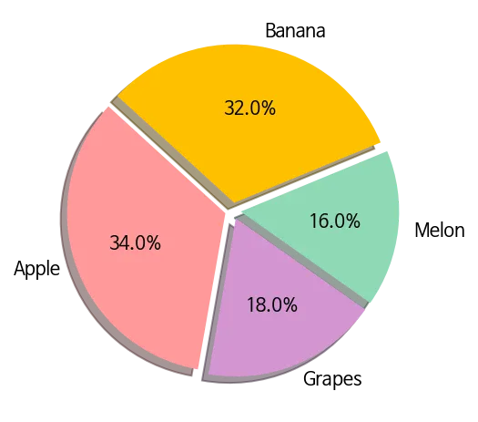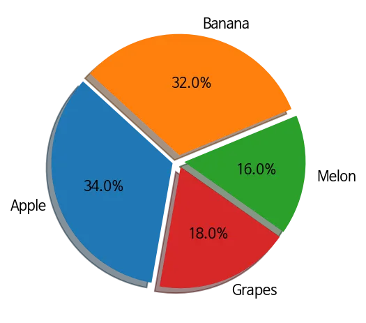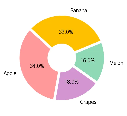 explode는 부채꼴이 파이 차트의 중심에서 벗어나는 정도
