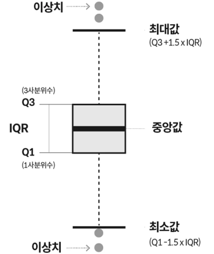 일반적으로 박스플롯은 전체 데이터로부터 얻어진 아래의 다섯 가지 요약 수치를 사용