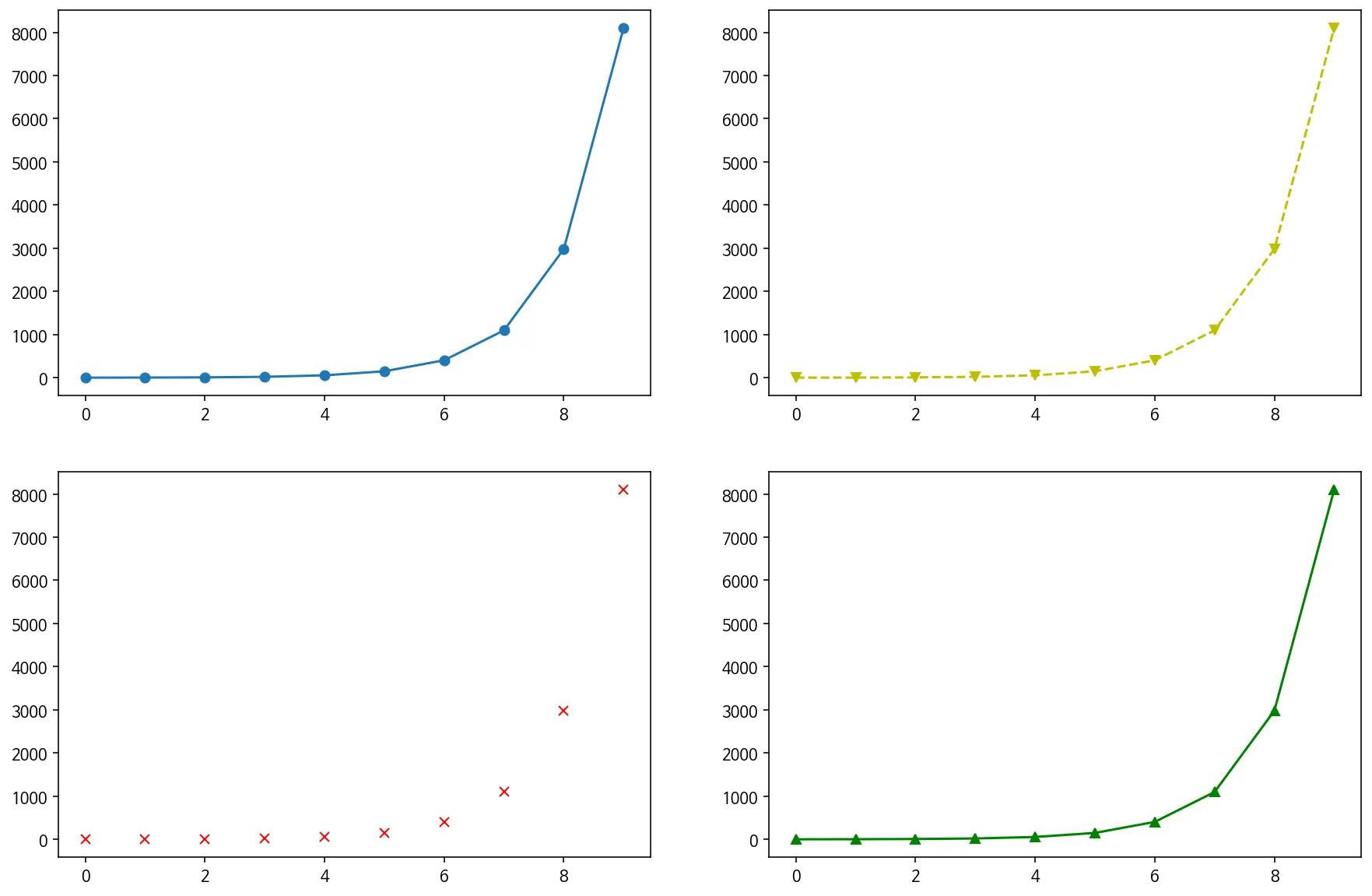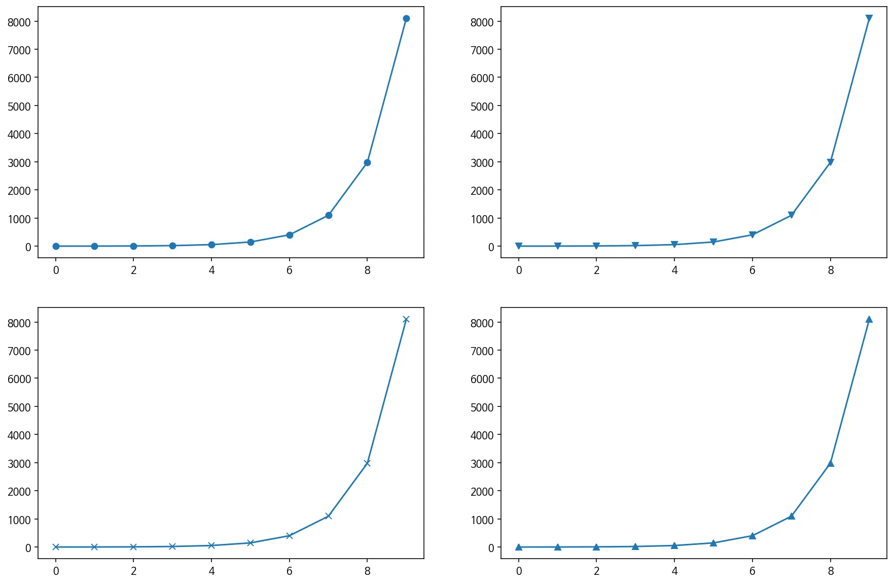 ax[0,1].plot(y,marker="v",linestyle='--')