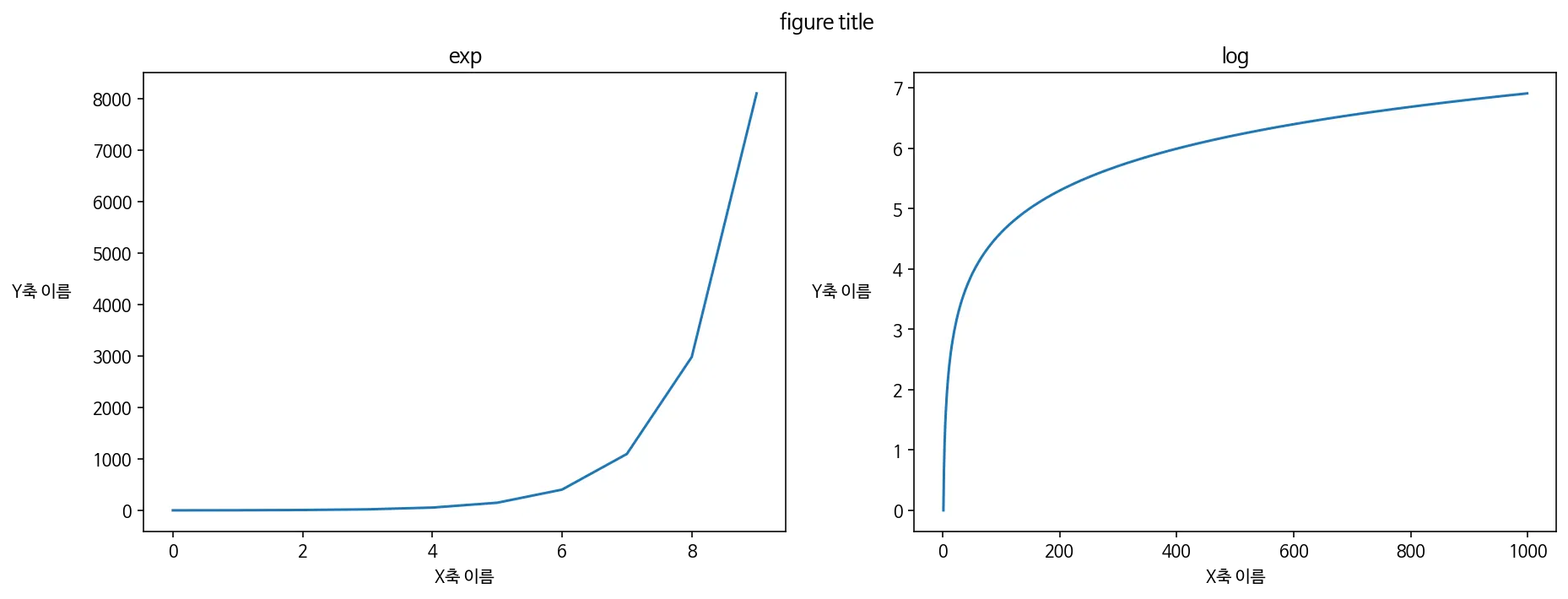 ax[0].set_ylabel("Y축 이름",rotation=0,labelpad=30)