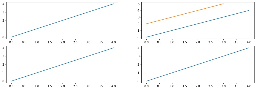 fig, ax = plt.subplots(2,2,figsize=[15,5])