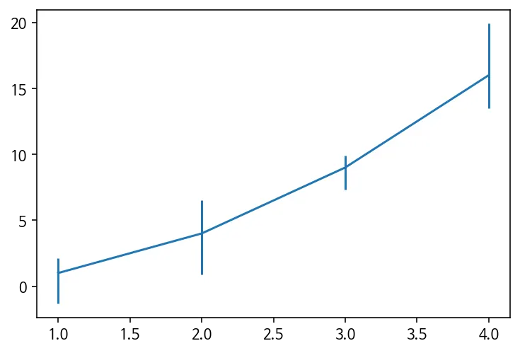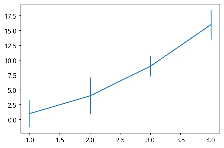 yerr = [2.3, 3.1, 1.7, 2.5] # 대칭 편차
