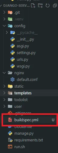 buildspec.yml 파일을 푸쉬할 코드 레포지토리에 생성