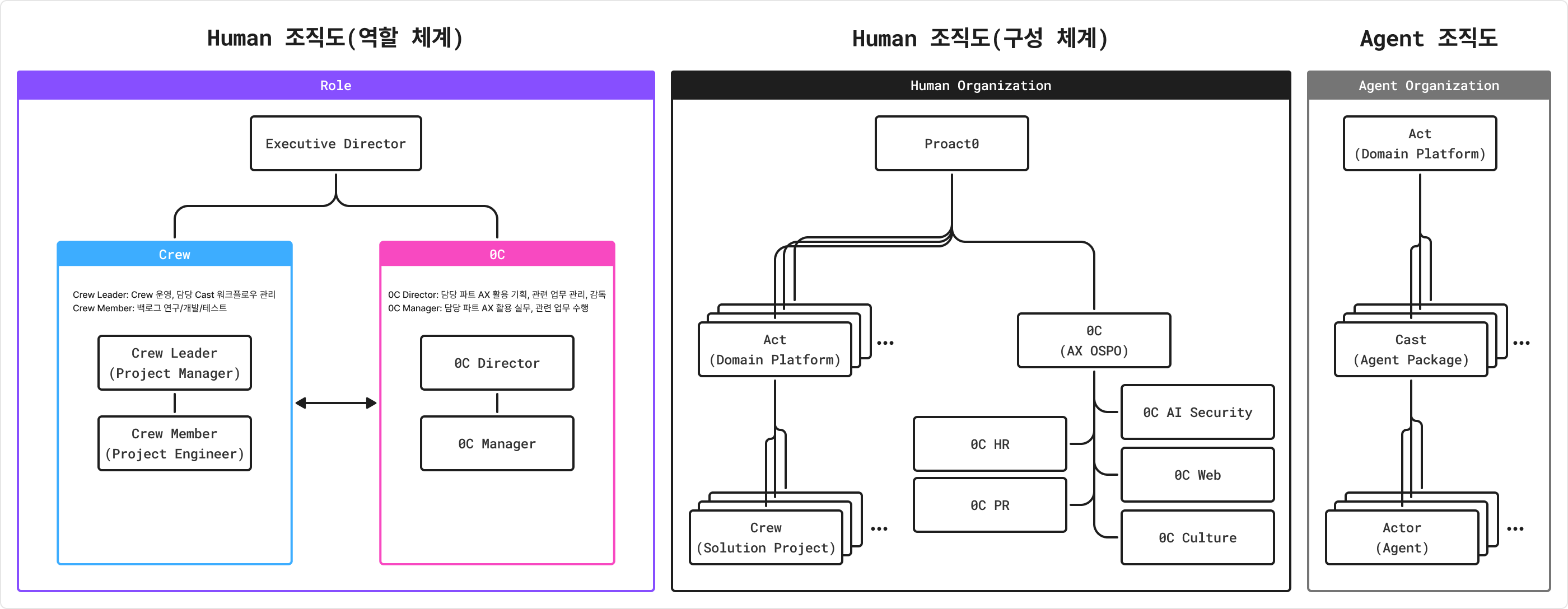 조직 | Proact0 | 프로액토 / 프로엑트 제로 | ≈ Proact0 | AI Agent 개념을 확장시킨 Actor의 발전을 제고하기 위해 설립된 비영리 연합체
